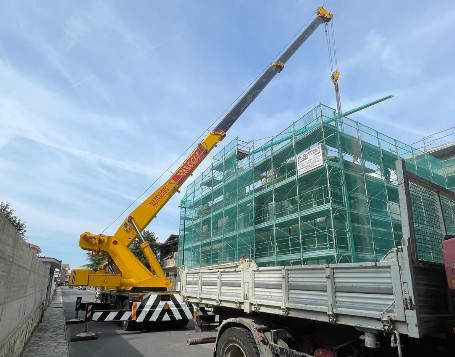 Lavori con grù- Operiamo con grù di diverse portate e dimensioni ideali per sollevamenti e movimentazioni in cantiere o spazi industriali
